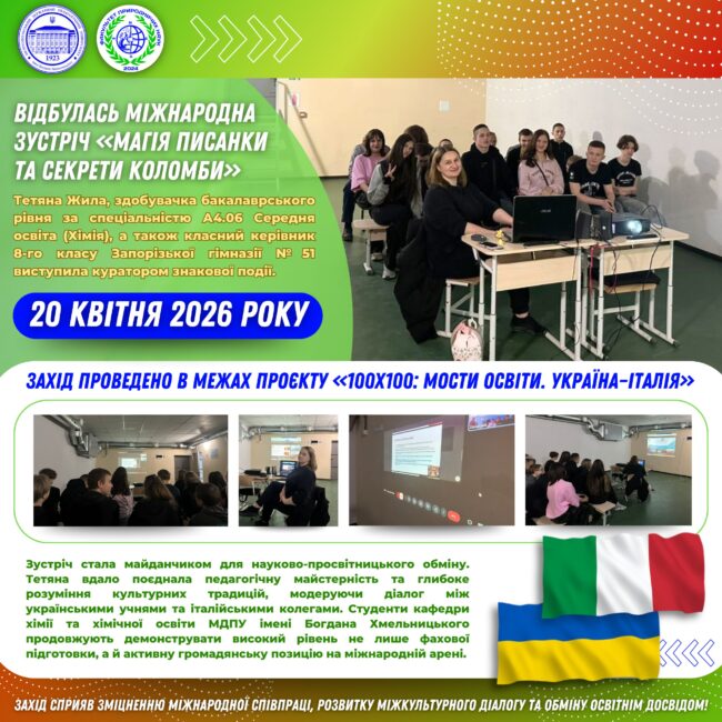 📅 21 квітня 2026 року на кафедрі географії та туризму Мелітопольського державного педагогічного університету імені Богдана Хмельницького у межах освітнього компоненту «Землезнавство з навчальною практикою та курсовою роботою. Модуль 2. Гідрологія з навчальною практикою» відбулася гостьова лекція Семеген Оксани Олегівни – кандидатки географічних наук, доцентки кафедри географії та методики її навчання Тернопільського національного педагогічного університету…