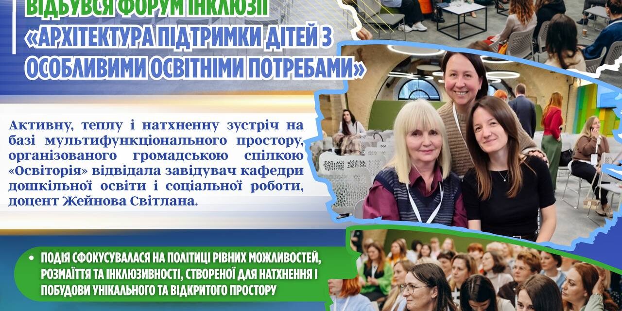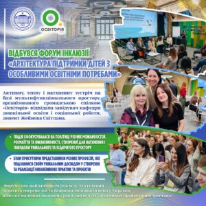 📚✨ 25 квітня 2026 року на базі мультифункціонального простору, організованого громадською спілкою Освіторія (м. Київ), відбувся захід, де зустрілися освіта, інновації та розвиток — Форум інклюзії «Архітектура підтримки дітей з особливими освітніми потребами».