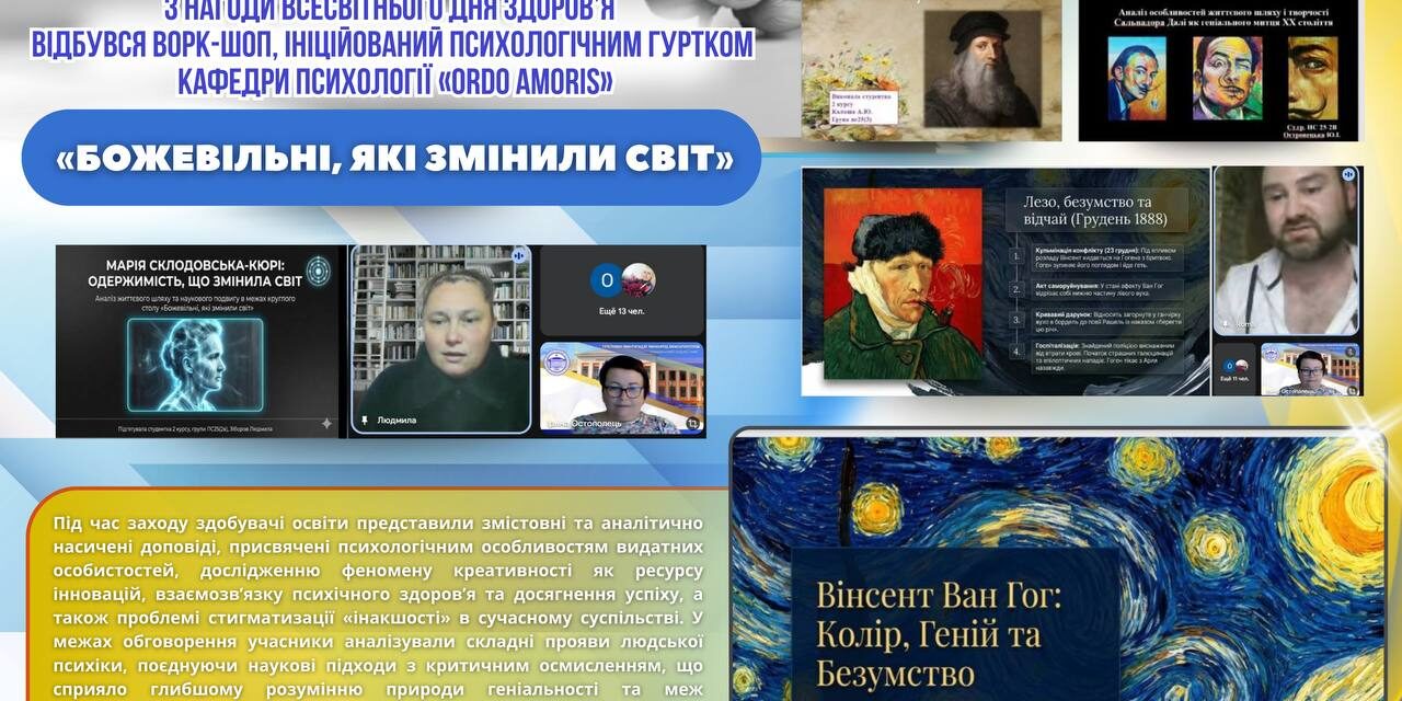 💡 Цьогоріч ворк-шоп об’єднав здобувачів освіти, які представили змістовні, аналітично насичені та водночас креативні доповіді про постаті, чия психіка балансувала на межі норми й геніальності.