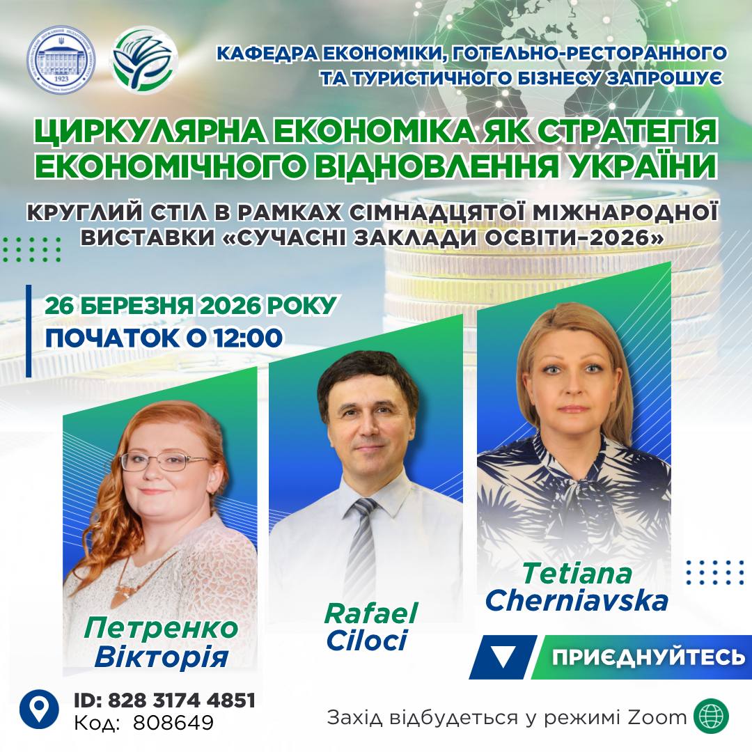 🎓 Кафедра економіки, готельно-ресторанного та туристичного бізнесу Мелітопольського державного педагогічного університету імені Богдана Хмельницького запрошує долучитися до фахової дискусії в межах XVII Міжнародної виставки «Сучасні заклади освіти – 2026». У центрі уваги — перехід від лінійної моделі «взяв-зробив-викинув» до відновлювальної економіки як ключового чинника регенерації України. 📍Захід відбудеться 26 березня 2026 року⏰ Час: 12:00 – […]
