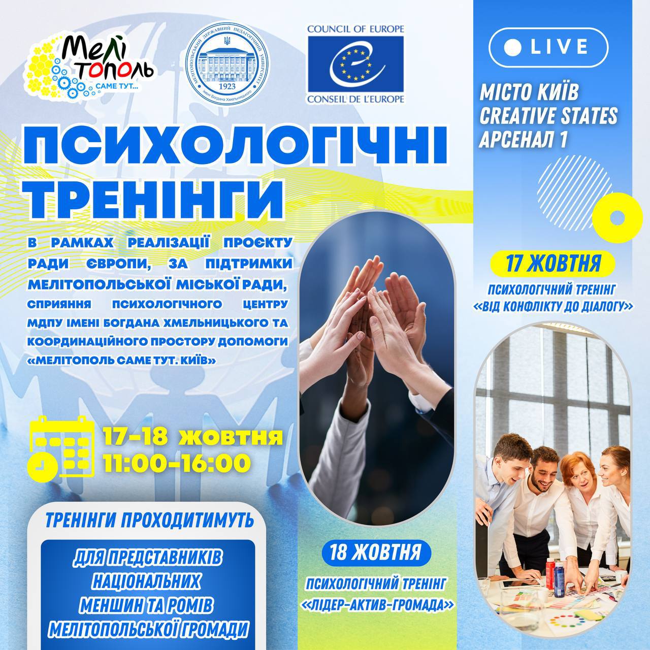 🇪🇺🤝🏻Ініціативна група національних спільнот Мелітополя в рамках реалізації Проєкту Ради Європи «Надання допомоги на місцевому рівні внутрішньо переміщеним представникам національних меншин та ромів у зв’язку з конфліктом для підтримки їх активної участі у соціальному та громадському житті. ДІМ – ДЕ МИ РАЗОМ» за підтримки Мелітопольської міської ради, сприяння Психологічного центру МДПУ імені Богдана Хмельницького та […]