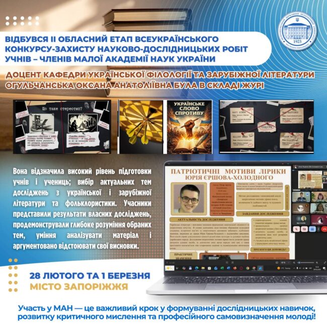 📅 28 лютого та 1 березня відбувся обласний етап захисту науково-дослідницьких робіт Малої академії наук України — інтелектуальний майданчик, де формується нове покоління дослідників у сфері природничих наук. 🌿 У складі журі наукового відділення екології та аграрних наук працював Подорожний Сергій Миколайович — декан факультету природничих наук МДПУ імені Богдана Хмельницького, кандидат біологічних наук, доцент…