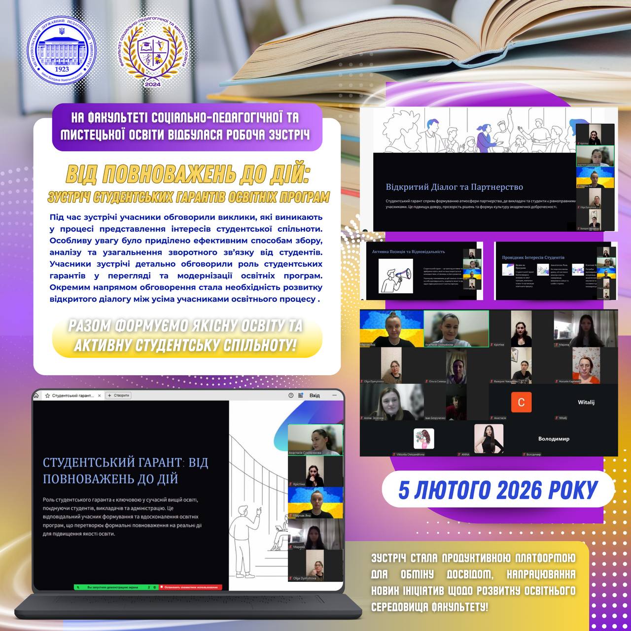 🌟 Маєш талант і хочеш поділитися ним? Саме час! Запрошуємо здобувачів університету взяти участь у конкурсі талантів до Дня закоханих! 😍 Малюєш, співаєш, танцюєш, декламуєш вірші, граєш на музичних інструментах чи створюєш романтичні вироби? Твоя творчість має шанс підкорити серця! 💌 Надсилай фото або відео свого таланту на електронну адресу radastudentska@mspu.edu.ua ‼ Вимоги до участі: […]