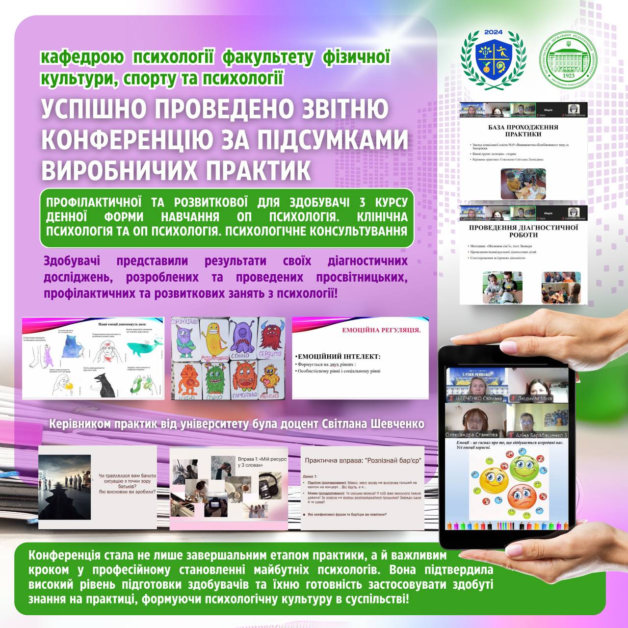📅🇺🇦 16 травня 2025 року кафедрою психології факультету фізичної культури, спорту та психології Мелітопольського державного педагогічного університету імені Богдана Хмельницького було проведено завершальну звітню конференцію за підсумками виробничих практик — профілактичної та розвиткової — для здобувачів 3 курсу денної форми навчання за наступними освітніми програмами: 🧬✅ ОП Психологія. Клінічна психологія🙋🏼♂️✅ОП Психологія. Психологічне консультування 🏫📌Базами проходження […]