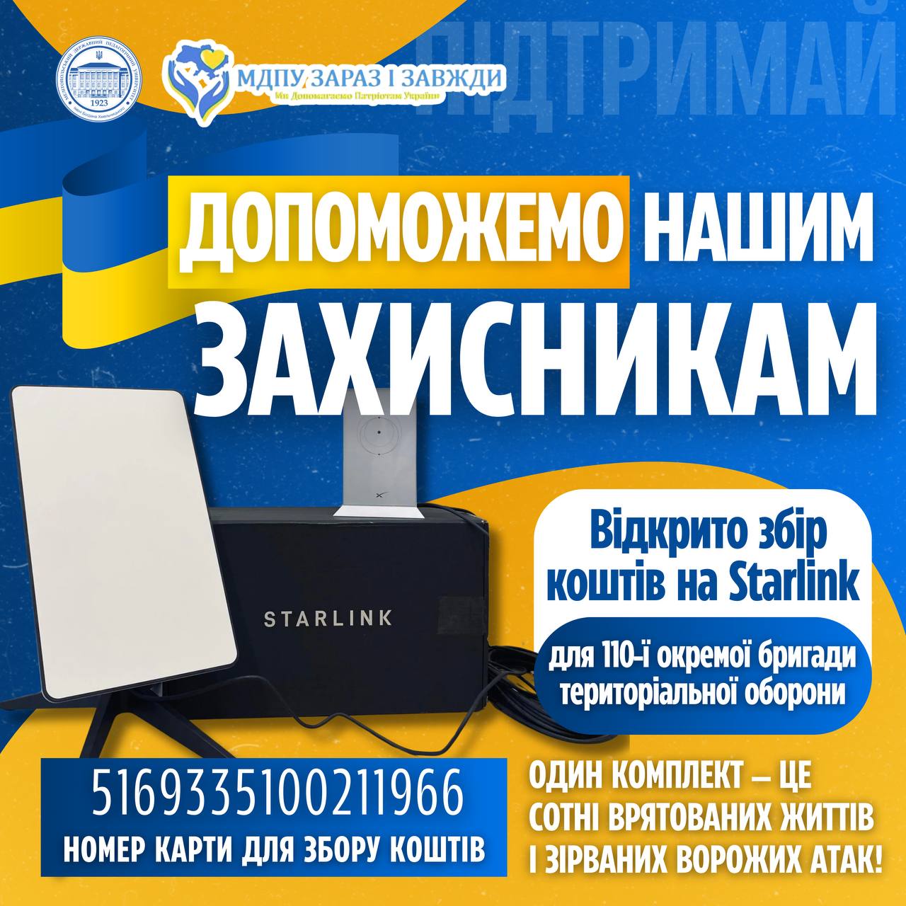 🪖Війна — це не лише зброя, броня і дрони. Це ще й зв’язок, який рятує життя.📡 Starlink — це очі, вуха і голос наших воїнів на передовій. 🫡‼️ 110-та бригада ТРО щодня тримає оборону, працює в складних умовах, і потребує стабільного, надійного інтернету. Без нього — немає можливості оперативно отримати розвіддані, передати координати, провести аеророзвідку […]