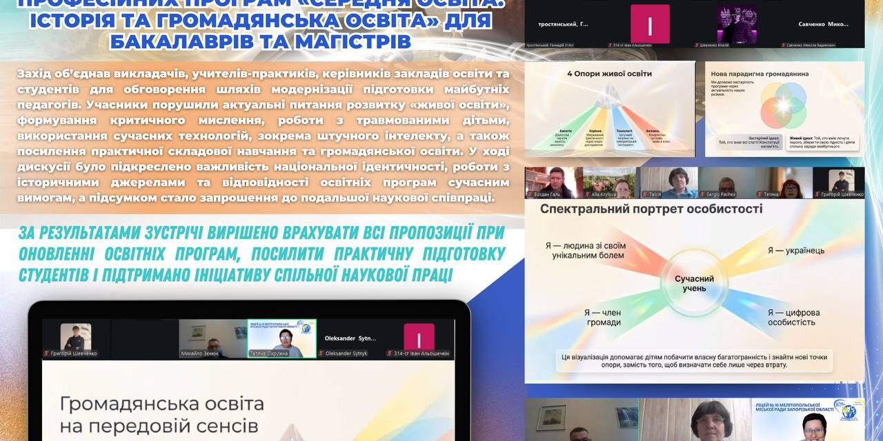 🤝 Нещодавно, 31 березня 2026 року, на кафедрі історії та археології відбулася зустріч зі стейкхолдерами, присвячена оновленню освітньо-професійних програм «Середня освіта. Історія та громадянська освіта» для бакалаврів та магістрів. Захід об’єднав викладачів, вчителів-практиків, керівників закладів освіти та студентів для спільного пошуку шляхів модернізації підготовки майбутніх педагогів.