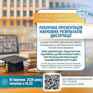 📝 Тема дисертації: «Педагогічна підтримка дітей раннього віку, постраждалих внаслідок надзвичайних ситуацій»