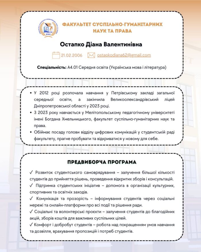 🔥🎓 Стартує серія знайомств із кандидатами на посади голів студентських рад факультетів.