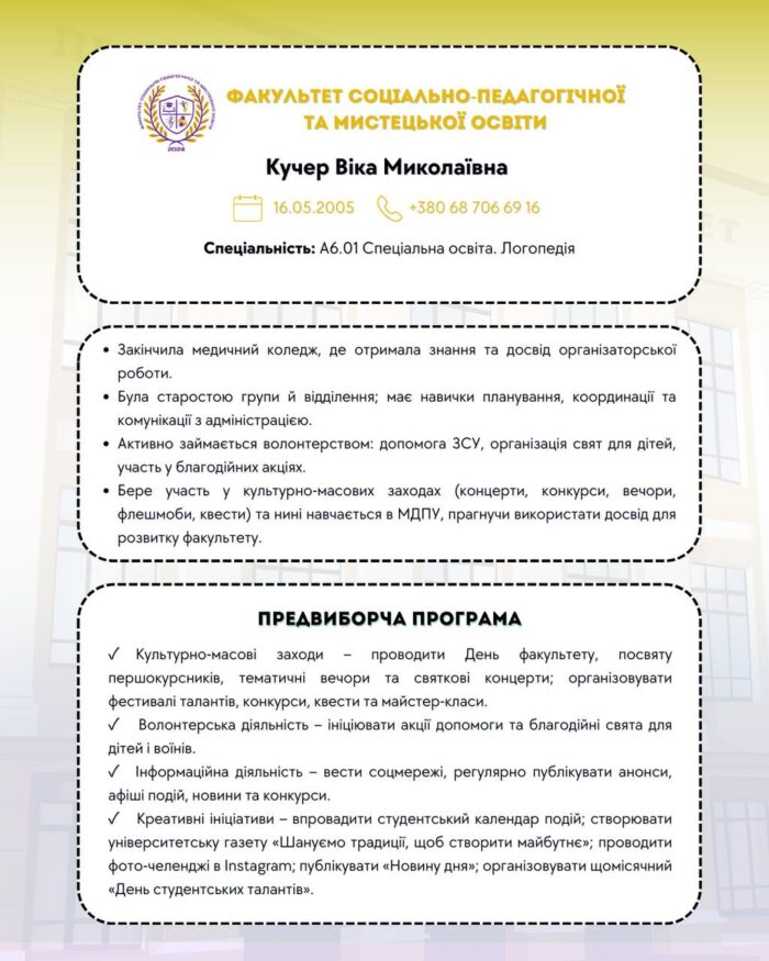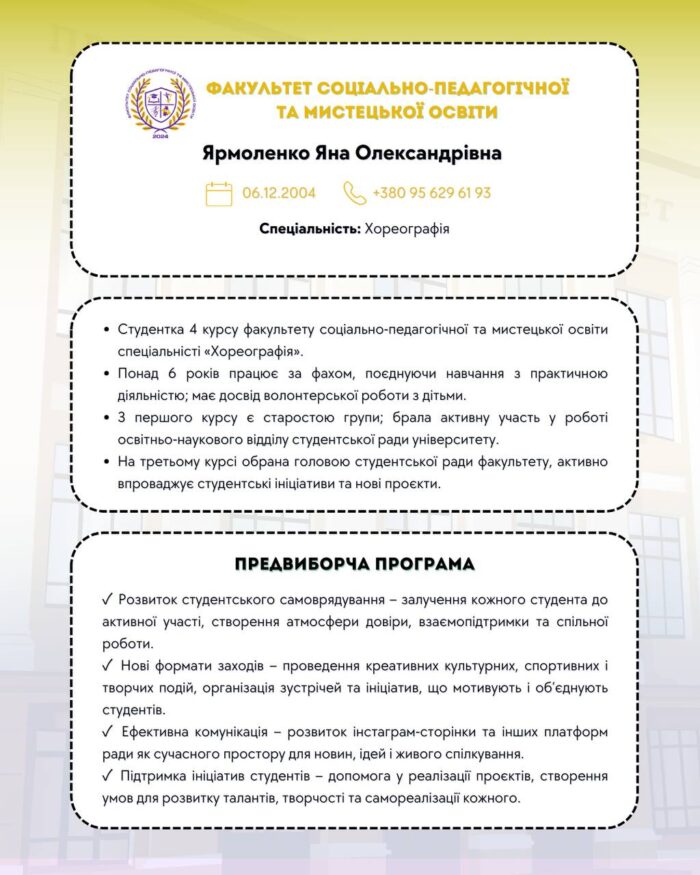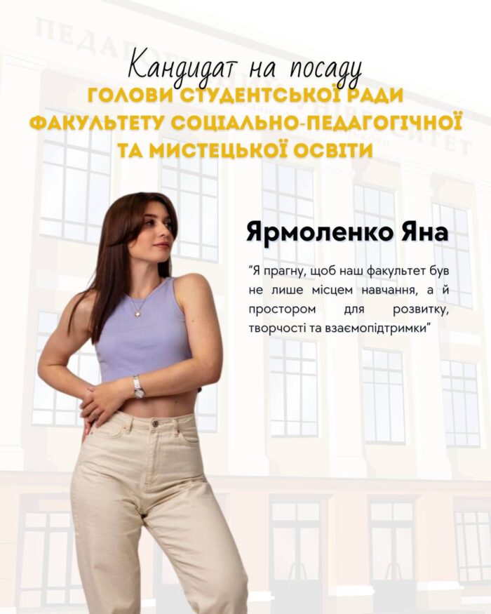 🎉 Друзі, знайомтесь із кандидатами на посаду голови студентської ради факультету соціально-педагогічної та мистецької освіти!