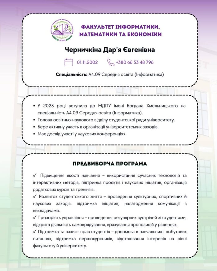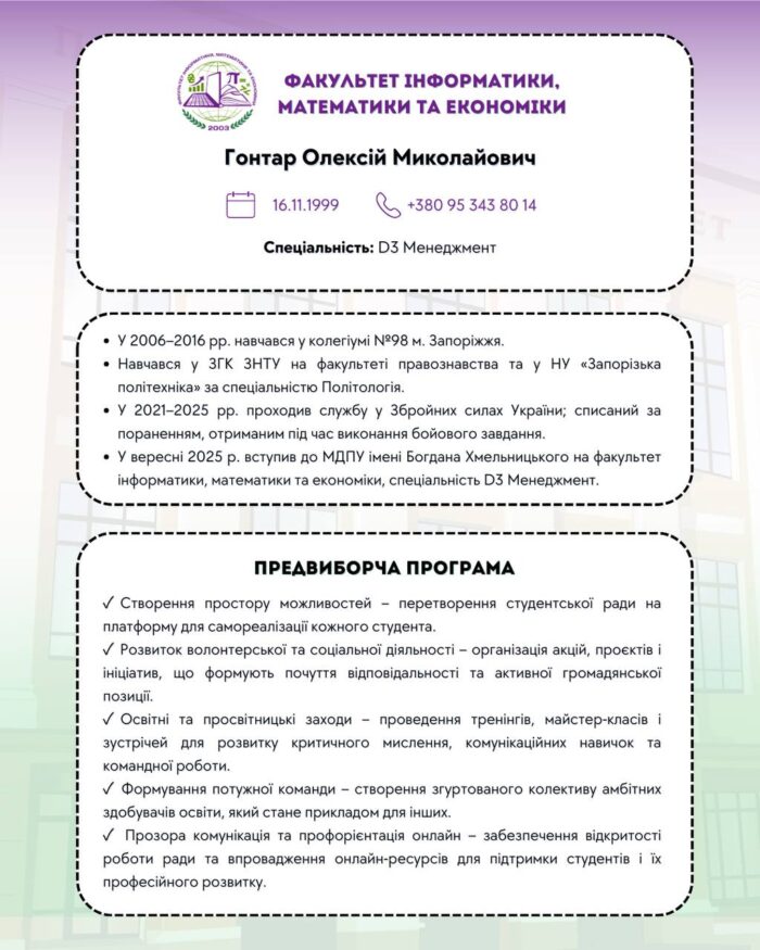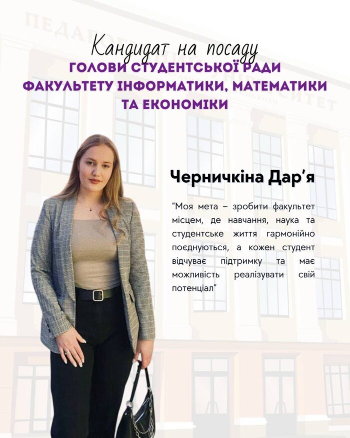 🚀 І нарешті знайомимо вас із нашими кандидатами на посаду голови студентської ради факультету інформатики, математики та економіки!