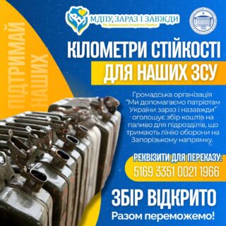 ✊🏻🇺🇦 Громадська організація “Ми допомагаємо патріотам України зараз і назавжди” оголошує збір коштів на паливо для підрозділів, що тримають лінію оборони на Запорізькому напрямку. Це наша спільна можливість підтримати тих, хто щодня ризикує життям заради нашої безпеки.