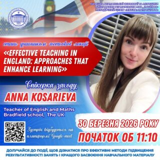👩‍🏫 Спікер — Anna Kosarieva, Teacher of English and Maths, Bradfield School (The UK).