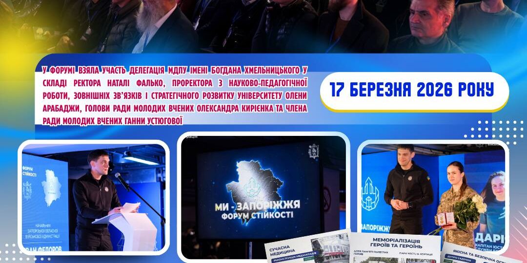 🎓 У Форумі взяла участь делегація МДПУ імені Богдана Хмельницького у складі ректора Наталі Фалько, проректора з науково-педагогічної роботи, зовнішніх зв’язків і стратегічного розвитку університету Олени Арабаджи, голови Ради молодих вчених Олександра Кирієнка та члена Ради молодих вчених Ганни Устюгової.