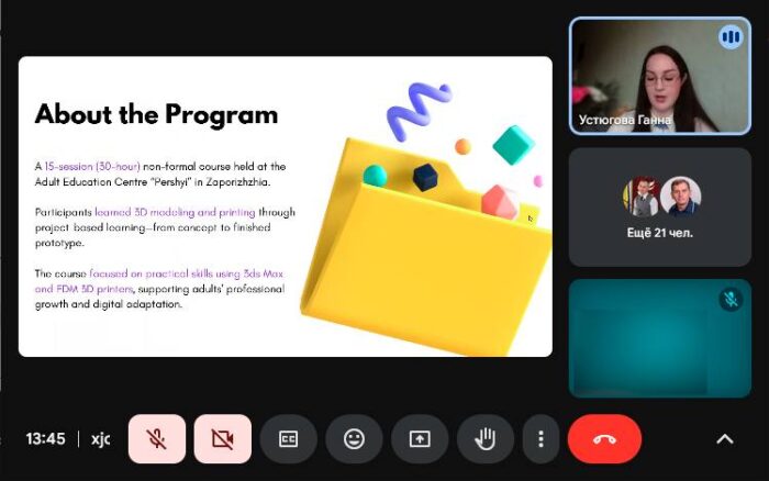 📚🎓 Курс було реалізовано на базі Громадської спілки «Соціальне підприємство «Центр освіти дорослих «Перший» (м. Запоріжжя) з метою формування у дорослих осіб навичок 3D-моделювання та 3D-друку.