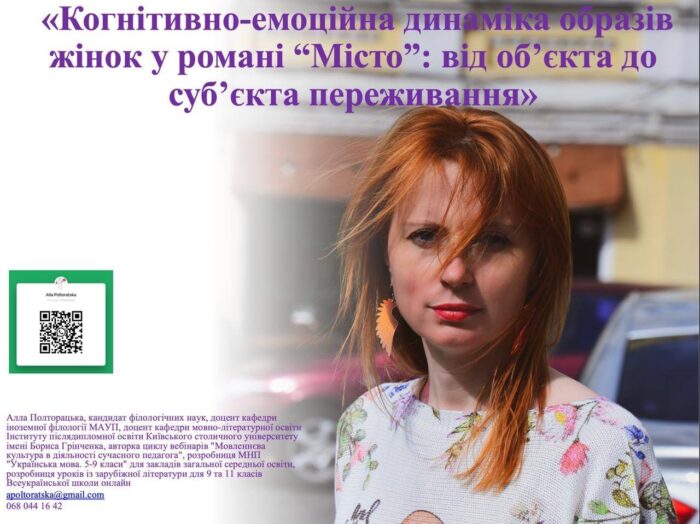 ⭐️👩🏼🦱 Під час зустрічі лекторка представила оригінальне прочитання жіночих образів у романі Валер’яна Підмогильного «Місто» крізь призму когнітивно-емоційного аналізу. У центрі уваги були питання взаємодії розуму й почуття, символіка архетипів дівчини, жінки, матері, а також концепт кореня як духовної основи української культури.
