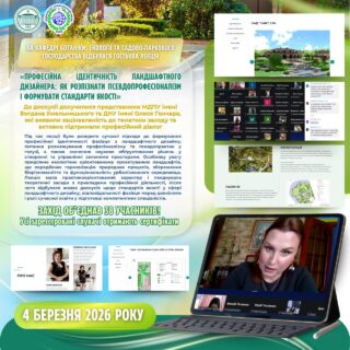 📅 4 березня 2026 року на кафедрі ботаніки, екології та садово-паркового господарства відбулася гостьова лекція «Професійна ідентичність ландшафтного дизайнера: як розпізнати псевдопрофесіоналізм і формувати стандарти якості», яку провела Юлія Зоренко — ландшафтна дизайнерка, засновниця студії Zorenko Archiland, спеціалістка з 3D-проєктування садових і громадських просторів (м. Київ). Захід став майданчиком для фахового обговорення сучасних викликів і тенденцій розвитку галузі.