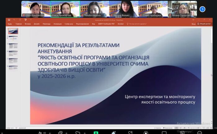 👩💼 Керівниця Центру Олеся Прокоф’єва представила детальний аналіз результатів опитування, акцентуючи увагу на їхньому тлумаченні через сучасні принципи внутрішнього забезпечення якості освіти. Особливий наголос було зроблено на важливість трансформації отриманих результатів у реальні управлінські рішення на всіх рівнях – університетському, факультетському та кафедральному.