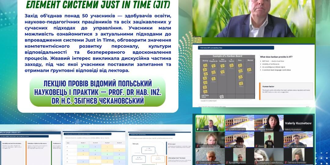 ⚙️👥 Лекцію на тему «Людський фактор як ключовий елемент системи Just in Time (JIT)» провів відомий польський науковець і практик — prof. dr hab. inż. dr h.c. Збігнєв Чєкановський. У центрі уваги були питання ролі людини в забезпеченні ефективності виробничих систем, механізми організації потоків, стандартизації роботи та формування управлінського лідерства.