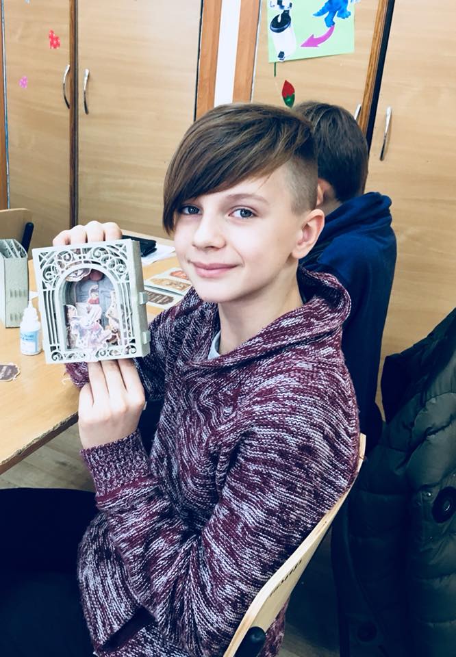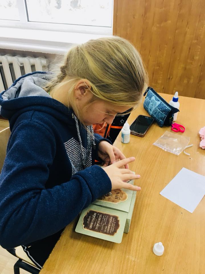 Після спільного перегляду книги настав час індивідуальної роботи. Ні, не так: кожен учень став Творцем – творив дивовижний світ казки Власноруч. А допомагали йому у цьому герої і конструктив із такого собі паперового конструктора 3D-листівки-сцени серед казкових героїв яких: Червона Королева і Король, Капалюшник і Білий Кролик і … Чеширський Кіт. Попри всі технічні негаразди на кшталт «здається, з клеєм переборщив», «ой, лишенько, не туди приклеїв» тощо, всі раділи, що все вдалося вчасно «реабілітувати і врятувати» і врешті-решт Світ побачив сімнадцять версій розвитку казкових подій) – схожих і водночас різних.