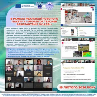💻 Наші викладачі долучилися до вебінару, проведеного фахівцями Технологічного університету м. Грац (Австрія). У межах сесії були розглянуті такі теми: