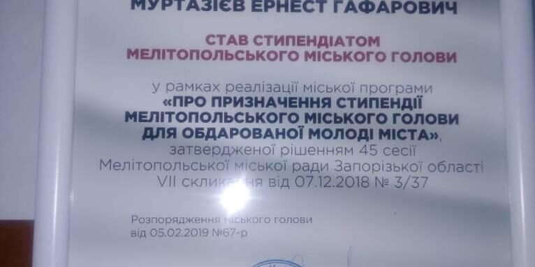 Сертифікати стипендіатів Мелітопольського міського голови отримали: