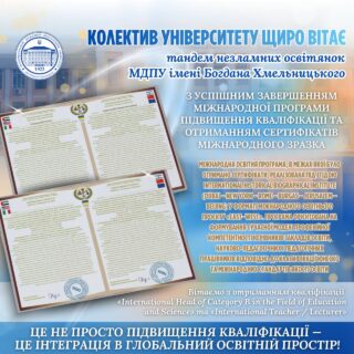 🏅💐Отримані кваліфікації «International Head of Category B in the Field of Education and Science» та «International Teacher / Lecturer» засвідчують високий рівень професійної підготовки, відповідність міжнародним освітнім стандартам та готовність до діяльності у глобальному академічному просторі.