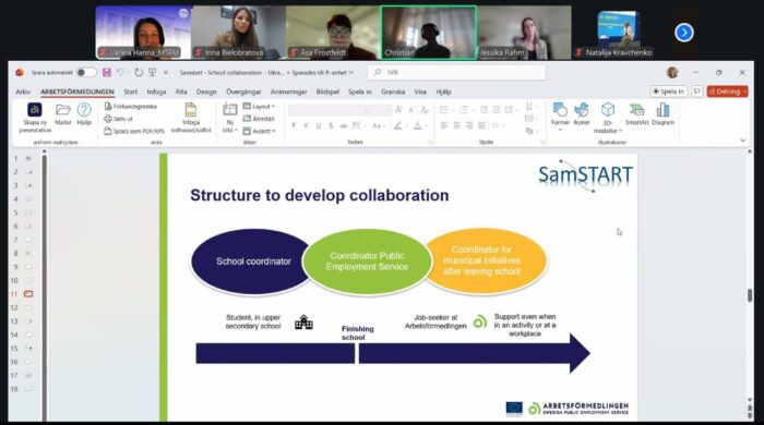 🇸🇪📘 У межах програми вебінару учасникам були представлені дві успішні шведські ініціативи. Зокрема, національна програма Samstart, що реалізується Шведською службою зайнятості та спрямована на забезпечення скоординованої міжвідомчої співпраці між школами, муніципалітетами та службами зайнятості. Ініціатива передбачає ранні втручання ще до завершення навчання, індивідуальне планування кар’єрного шляху, адаптацію робочих місць, фінансові стимули для роботодавців та реальні приклади успішного працевлаштування молоді з інвалідністю.