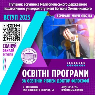 Поринь у світ глибоких досліджень, наукових відкриттів і глобального впливу — разом із електронним «ПУТІВНИКОМ ВСТУПНИКА – 2025» за освітнім рівнем Доктор філософії від МДПУ імені Богдана Хмельницького!