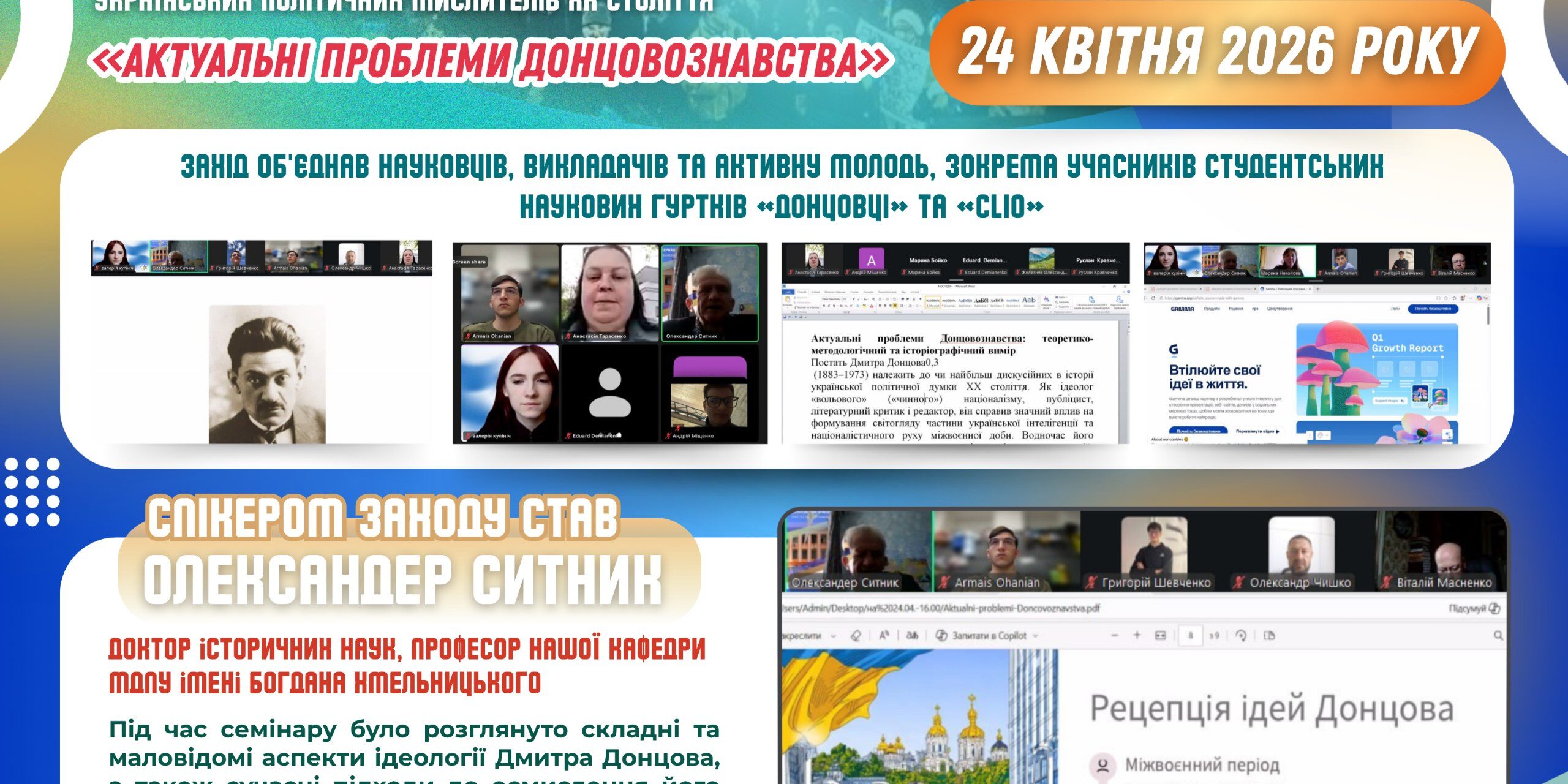 📌 Тема семінару — «Актуальні проблеми Донцовознавства».