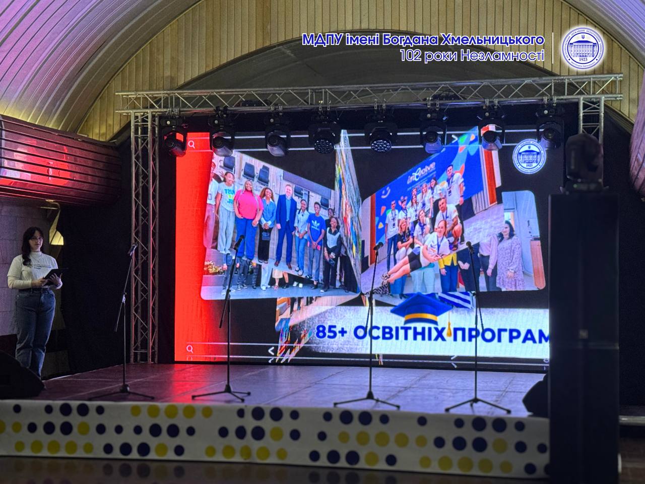 🎤 Важливою складовою участі стало інтерактивне представлення університету на головній сцені фестивалю. МДПУ презентували команда студентської ради та ректор Наталя Фалько, яка у виступі акцентувала увагу на унікальному поєднанні академічної якості, міжнародної активності, суспільної місії університету, інноваційних підходах до освіти та перевагах дистанційної форми навчання.