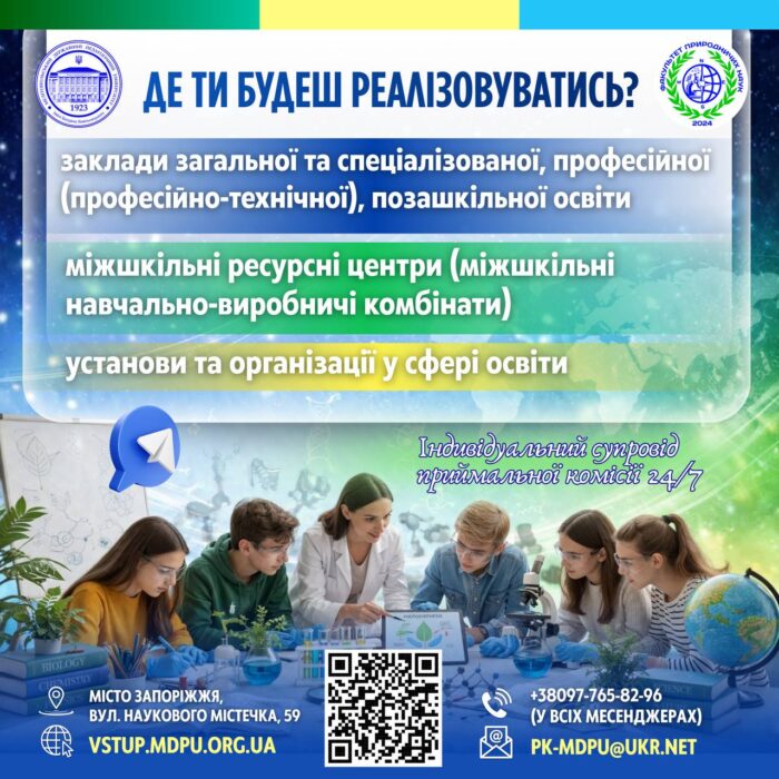 🏛✨ Факультет природничих наук МДПУ імені Богдана Хмельницького запрошує на навчання за сучасною та суспільно важливою спеціальністю