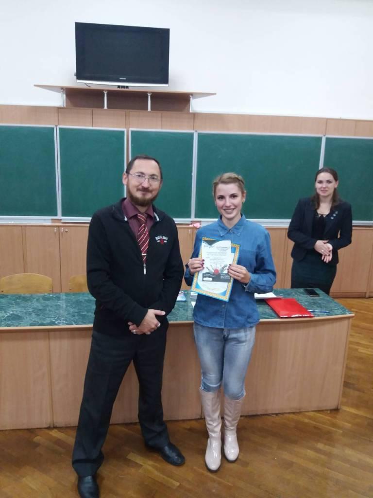 On October 26, 2018 summing up and awarding the winners of the competition “I-Teacher 2”, which was dedicated to the science of the future informatics and to the profession of the teacher of the computer science, was held. For the second year the competition of video clips is organized by Department of Computer Science and Cybernetics with the support of the sponsors: Web-Studio Profi.net.Ua Group awarded winners with quadrocopter and Bluetooth columns, Department of Computer Science and Cybernetics – with Virtual reality headset, entertaining center «Storm» gave the gift certificate for bowling game, Internet provider «Mediana» – the gift certificate for the free Internet use for 1 year.