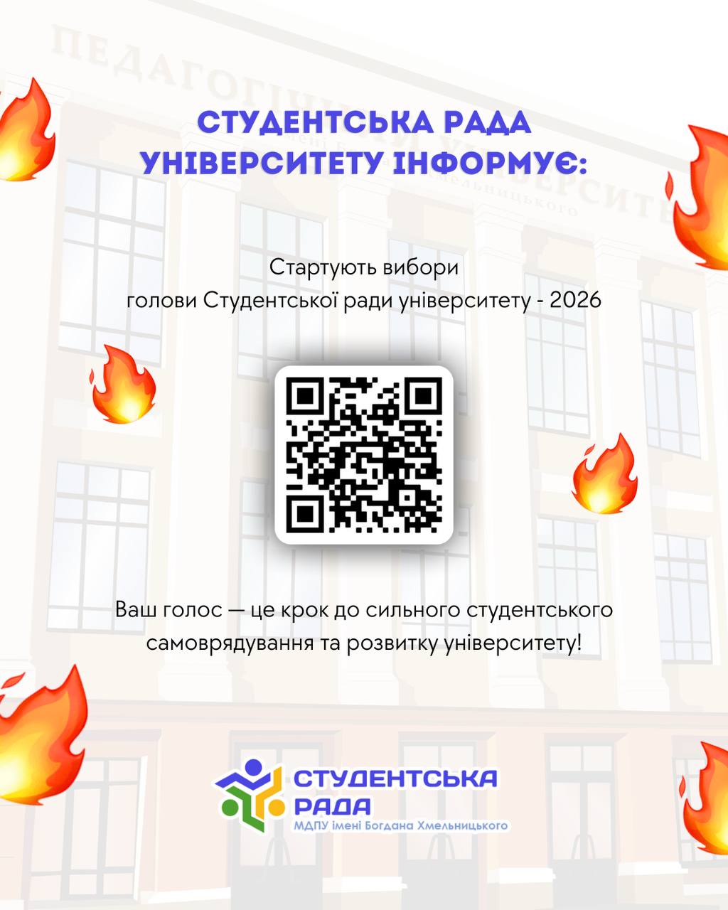 🗳️ Сьогодні, 30 грудня 2025 року, кожен студент має можливість вплинути на студентське життя та зробити свій вибір. ❗Розпочинається таємне голосування з обрання голови Студентської ради МДПУ імені Богдана Хмельницького на 2026 рік. 📲 Перейти до голосування просто — скануй QR-код на фото та долучайся до виборчого процесу онлайн. Ідентифікатор конференції: 867 8375 9843Код доступу:…