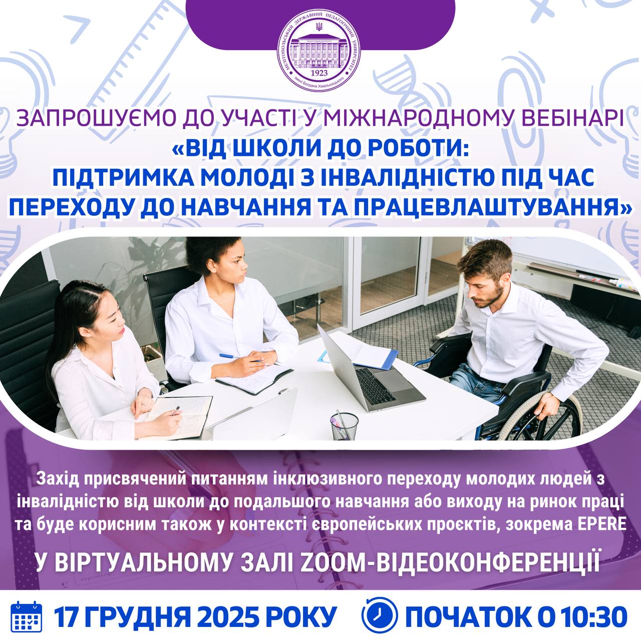 ВІД ШКОЛИ ДО РОБОТИ: МІЖНАРОДНИЙ ВЕБІНАР ПРО ІНКЛЮЗІЮ ТА ПРАЦЕВЛАШТУВАННЯ