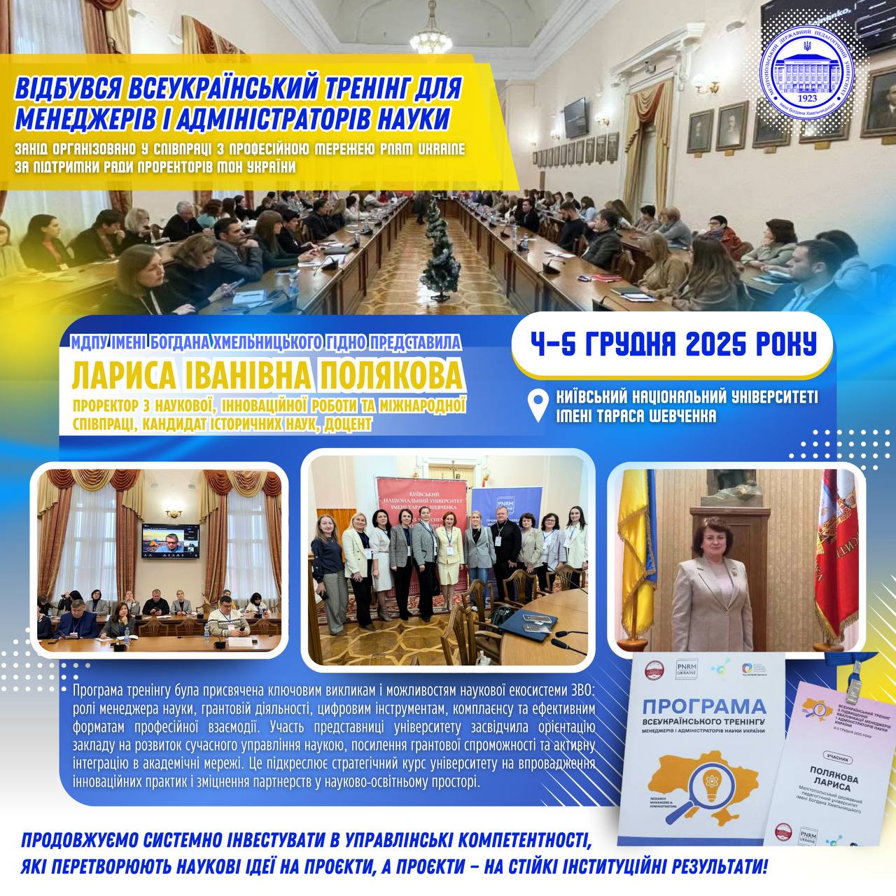 🥳‼️ 6 грудня 2025 року в Українському домі в Києві ГО «Прогресильні» разом з партнерами зібрали ключових гравців освіти, серед яких ректори, представники влади та громадського сектору. 👩🏼🎓🇺🇦Ректор нашого університету, професор Наталя Фалько як спікер взяла участь у публічній дискусії “PROосвіту 2025: Між сподіваннями та розчаруваннями. Як подолати розриви?” разом з іншими ректорами і представниками…