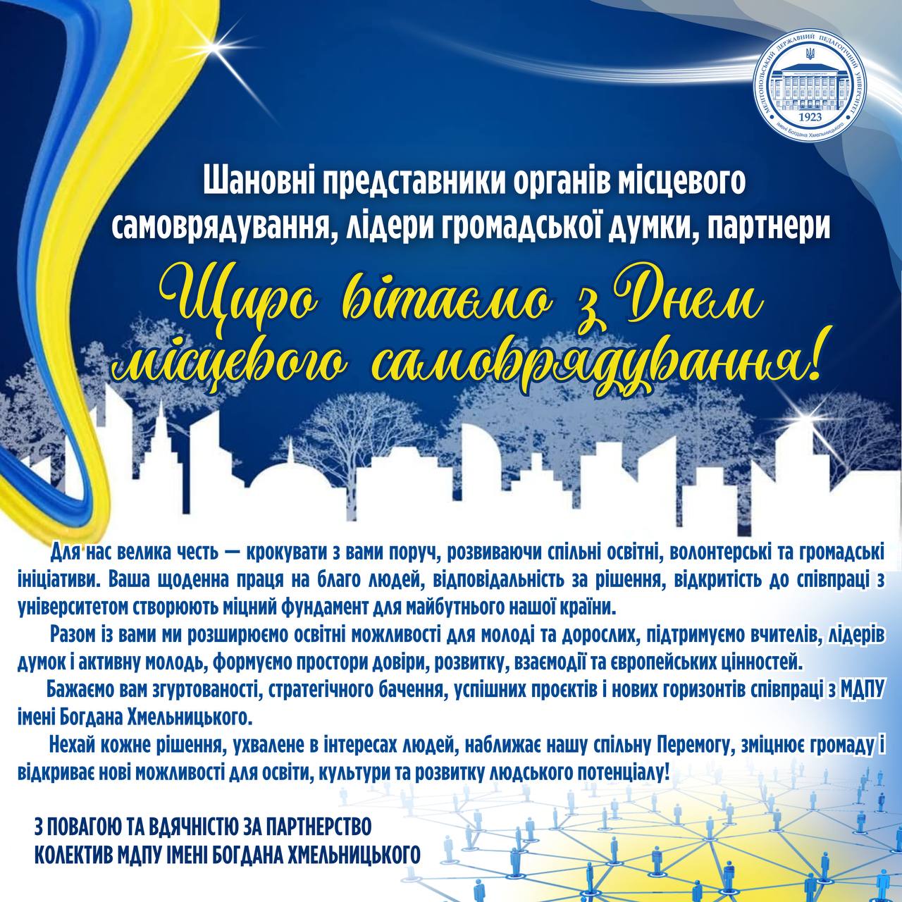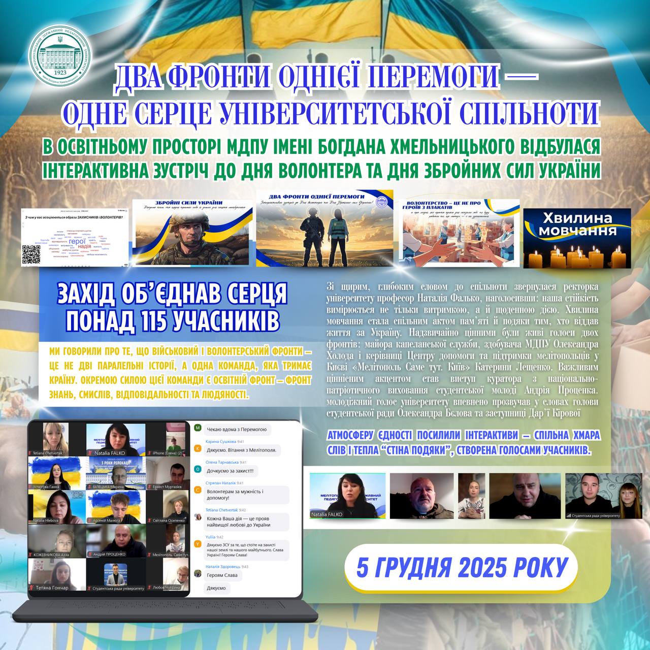👏🏻👥Шановні захисники та захисниці! Сердечно вітаємо вас з Днем Збройних Сил України — святом незламності, відданості та воїнської честі. Сьогодні, коли в Україні триває повномасштабна війна, ваше служіння набуває ще більшого значення та величі. 🛡✊🏻Ви — фортеця, що стримує ворога, стоїте на передовій правди та свободи, захищаючи нашу землю ціною неймовірних зусиль і щоденного подвигу.…