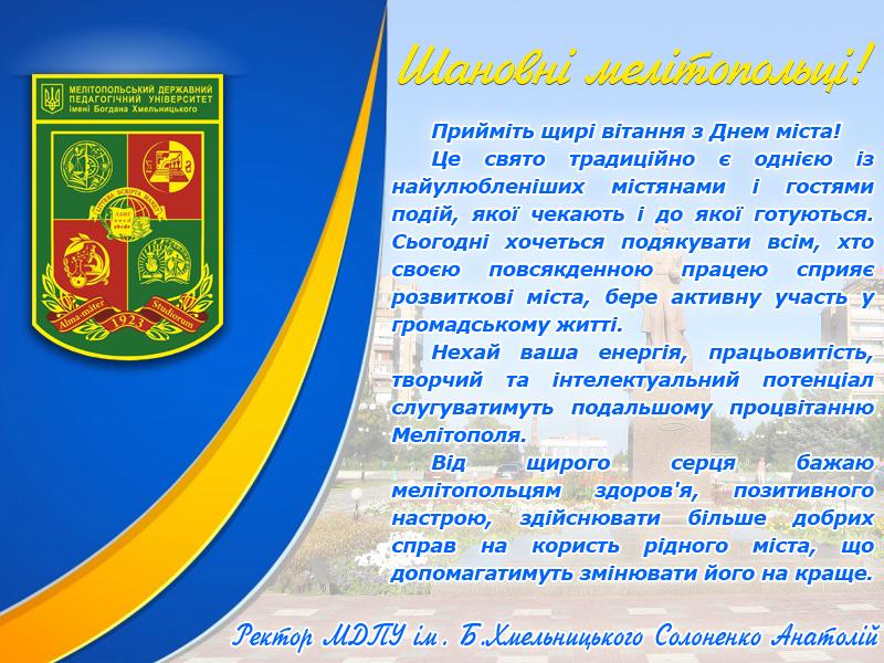 Колектив викладачів і студентів Мелітопольського державного педагогічного університету імені Богдана Хмельницького має традицію приймати участь у святкуванні Дня міста. Як і завжди університет прийняв участь у даному заході, який відбувався 30 вересня 2018 р., а саме у презентації навчальних закладів. Весела та гучна атмосфера тішила не лише мешканців Мелітополя, гості міста із захопленням споглядали свято.