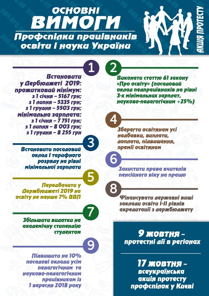 Президія Федерації профспілок України на своєму засіданні 20 вересня прийняла рішення про проведення Всеукраїнської акції протесту профспілок. Акція пройде у два етапи: Перший – попереджувальний етап – 9 жовтня 2018 року – у рамках Всесвітнього дня дій за гідну працю в областях України в трудових колективах на підприємствах, організаціях: у першій половині дня у трудових…
