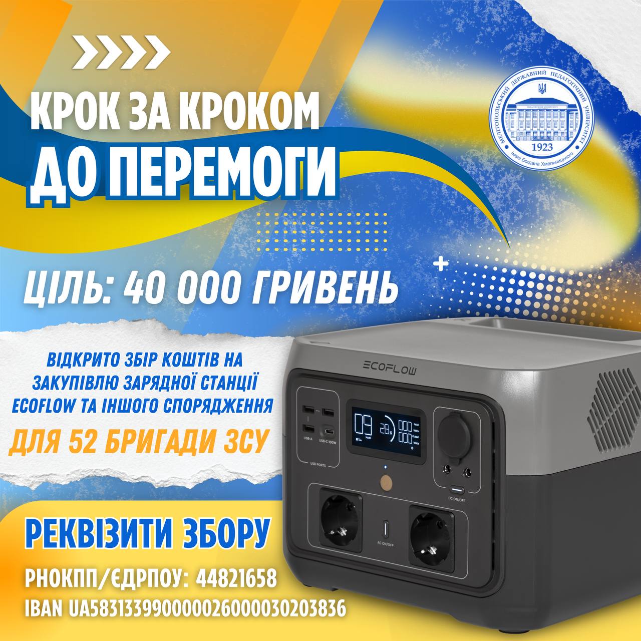 ВІДКРИТО ЗБІР КОШТІВ НА ЗАРЯДНУ СТАНЦІЮ ECOFLOW ТА СПОРЯДЖЕННЯ ДЛЯ 52-Ї БРИГАДИ ЗСУ!