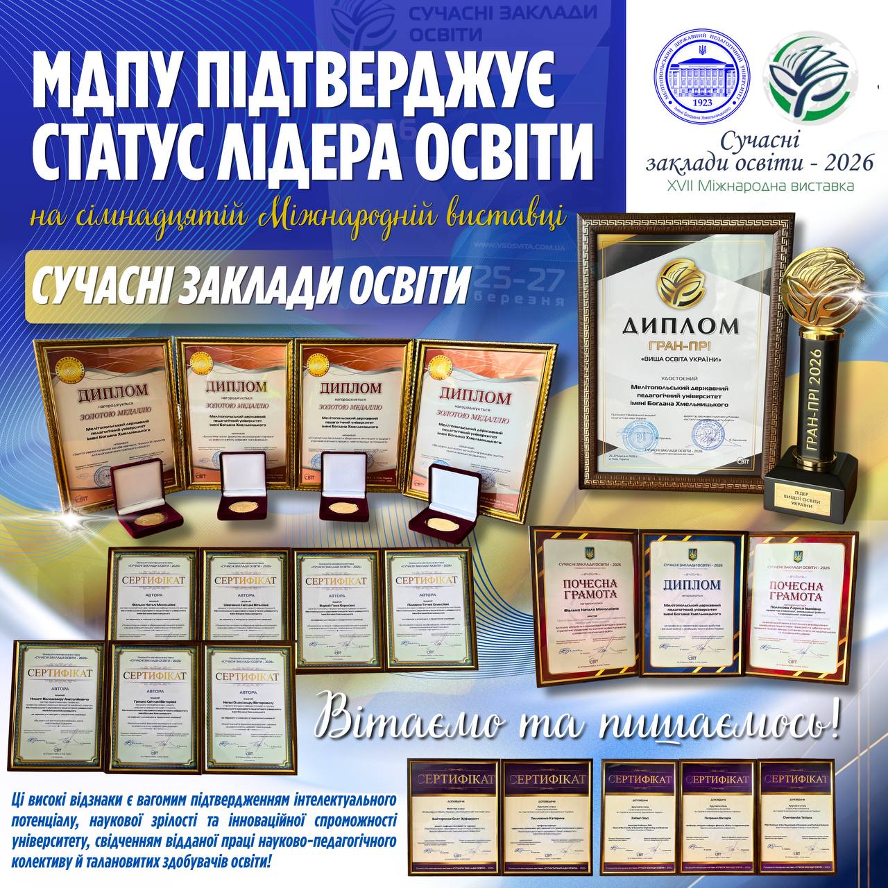 ІННОВАЦІЙНЕ ЛІДЕРСТВО МДПУ: ТРІУМФ НА XVIII МІЖНАРОДНІЙ ВИСТАВЦІ «СУЧАСНІ ЗАКЛАДИ ОСВІТИ – 2026»!