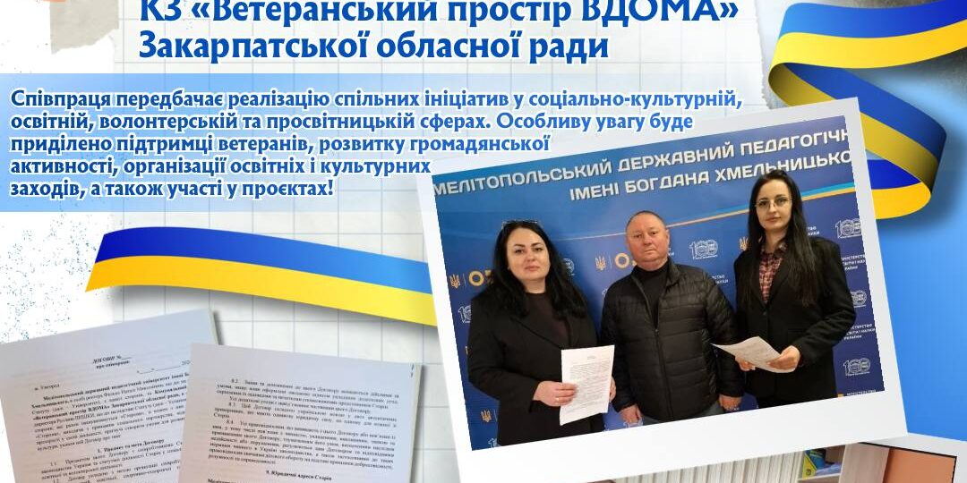 📅📍 Відбулася важлива подія, що відкриває нові можливості для розвитку соціально орієнтованого освітнього середовища та підтримки ветеранів. Мелітопольський державний педагогічний університет імені Богдана Хмельницького уклав Договір про співпрацю з Комунальним закладом «Ветеранський простір ВДОМА» Закарпатської обласної ради.