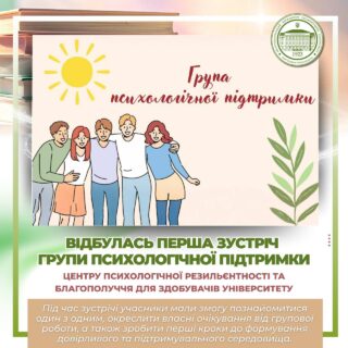 🤝🏻 Група психологічної підтримки функціонує як регулярний простір для обговорення актуальних переживань, розвитку навичок психологічної резильєнтності та підтримки емоційного благополуччя здобувачів університету.