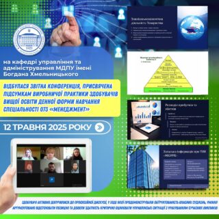 📅🚀12 травня 2025 року на кафедрі управління та адміністрування факультету інформатики, математики та економіки МДПУ імені Богдана Хмельницького відбулася збірна звітна конференція, присвячена підсумкам виробничої практики здобувачів вищої освіти денної форми навчання спеціальності 073 «Менеджмент» (група М414-і).