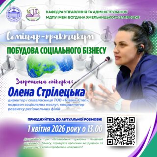 🎓 Кафедра управління та адміністрування Мелітопольського державного педагогічного університету імені Богдана Хмельницького запрошує здобувачів освіти, викладачів і всіх зацікавлених долучитися до семінару-практикуму на тему: «Побудова соціального бізнесу».