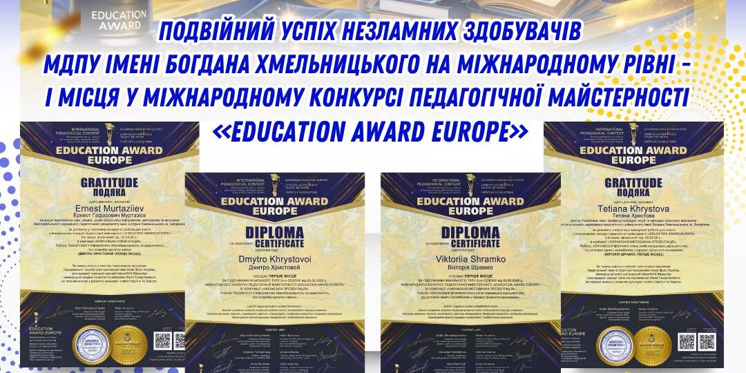🇺🇦🎓 Шрамко Вікторію — здобувачку ступеня вищої освіти «бакалавр» спеціальності 014.11 «Середня освіта. Фізична культура» факультету фізичної культури, спорту та психології — з визначним досягненням — І МІСЦЕМ у міжнародному конкурсі педагогічної майстерності «Education Award Europe»! 🌍🥇