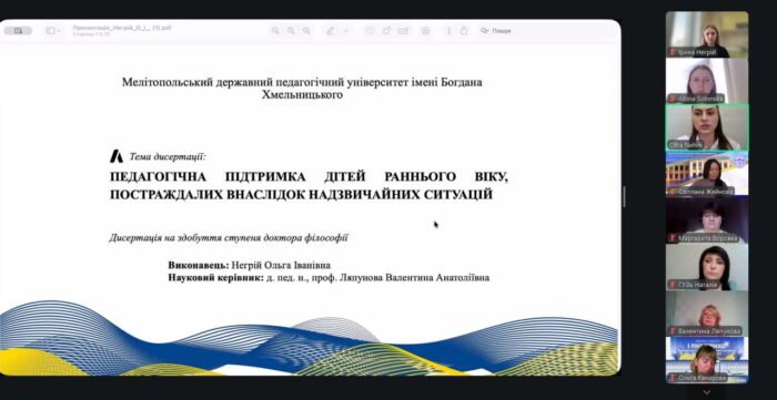 🧠 Під час доповіді здобувачка обґрунтувала актуальність теми, розкрила положення наукової новизни, визначила теоретичну та практичну значущість результатів, а також аргументувала їхню достовірність. Особливу увагу було приділено впровадженню педагогічної підтримки дітей раннього віку та педагогічного супроводу їх родин, постраждалих внаслідок надзвичайних ситуацій, зокрема повномасштабної війни в Україні.