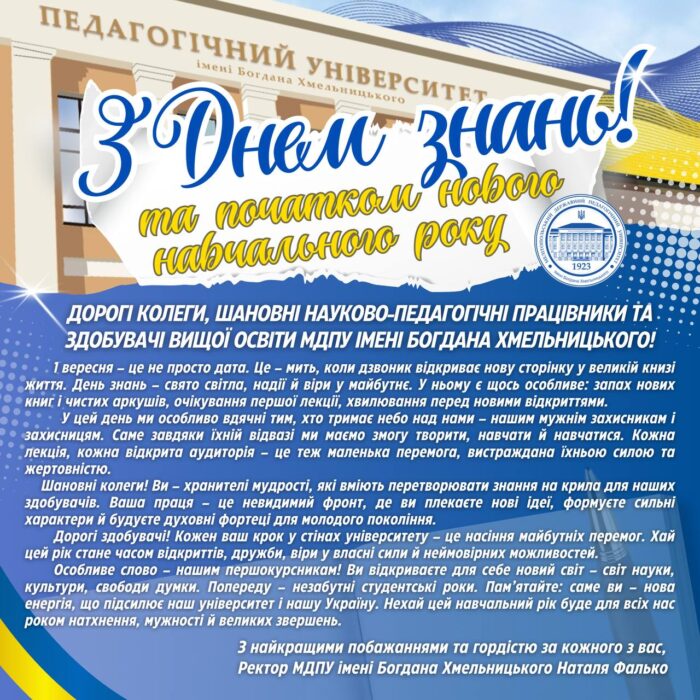 МДПУ > Новини університету > Привітання ректора МДПУ, доцента Фалько Наталі Миколаївни