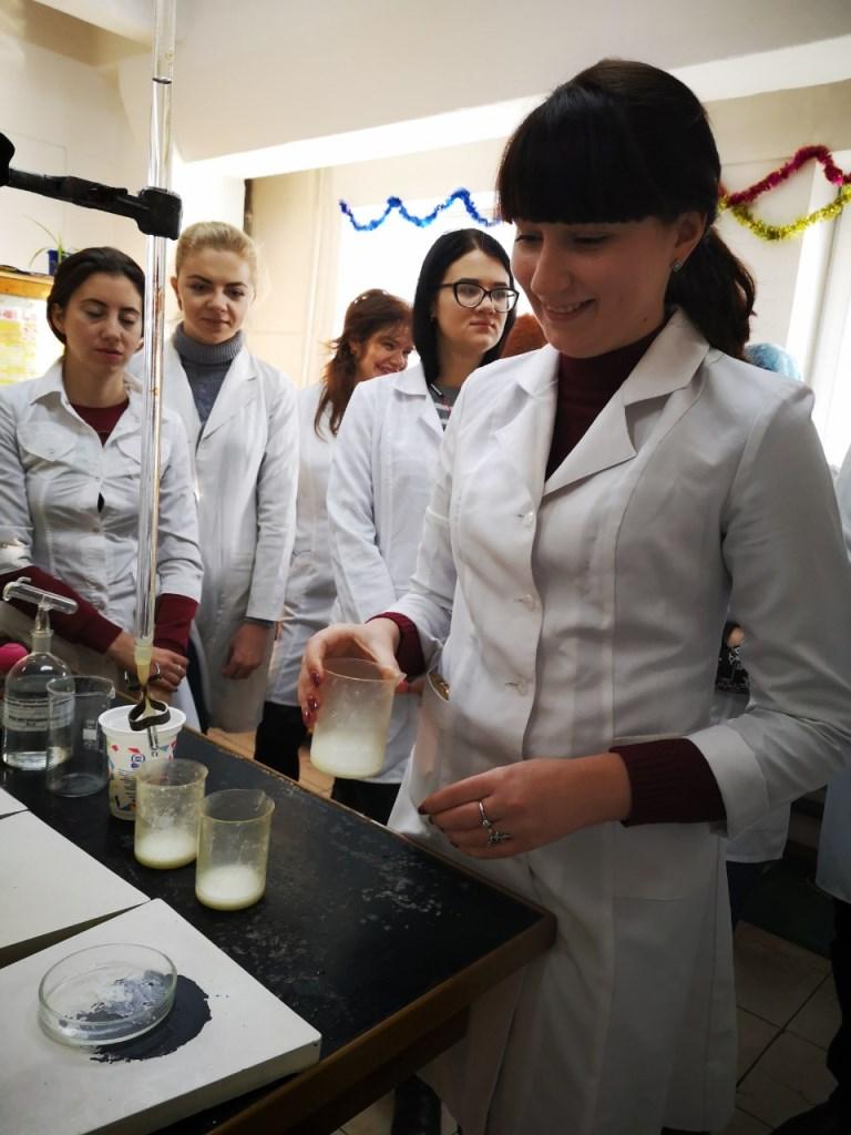 - лабораторний практикум «Методи визначення фальсифікації молока» (в рамках дисципліни «Методи вимірювання параметрів довкілля» для студентів спеціальностей 102 Хімія та 014.05 Середня освіта. Біологія (13 грудня 2018р.);