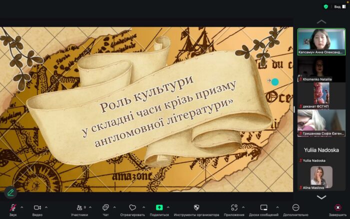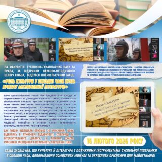 📅🏛 16 лютого 2026 року на факультеті суспільно-гуманітарних наук та права МДПУ імені Богдана Хмельницького, за підтримки науково-методичного центру Lingua, відбувся інтеркультурний захід «Роль культури у складні часи крізь призму англомовної літератури», організований викладачкою-стажисткою кафедри германської філології та методики викладання германських мов Хоменко Наталією. Спікеркою заходу була студентка групи кафедри германської філології та методики викладання германських мов Капсамун А.