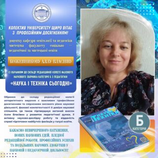 📚👏🏻 Обрання до складу редакційної колегії авторитетного наукового видання є важливим професійним досягненням та свідченням високого рівня наукової діяльності, фахової компетентності й довіри наукової спільноти. Це також підтверджує вагомий внесок Алли Власівни у розвиток педагогічної думки, її активну науково-дослідну роботу та відданість справі підготовки майбутніх фахівців у галузі освіти.
